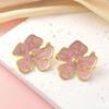 Luxury Titanium Steel Flower Stud Earrings with Enamel and Irregular Petals