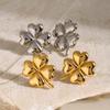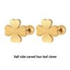 Korean Style Laser-Etched Four-Leaf Clover Heart Ear Studs - Fashionable Titanium Steel Earrings for Women