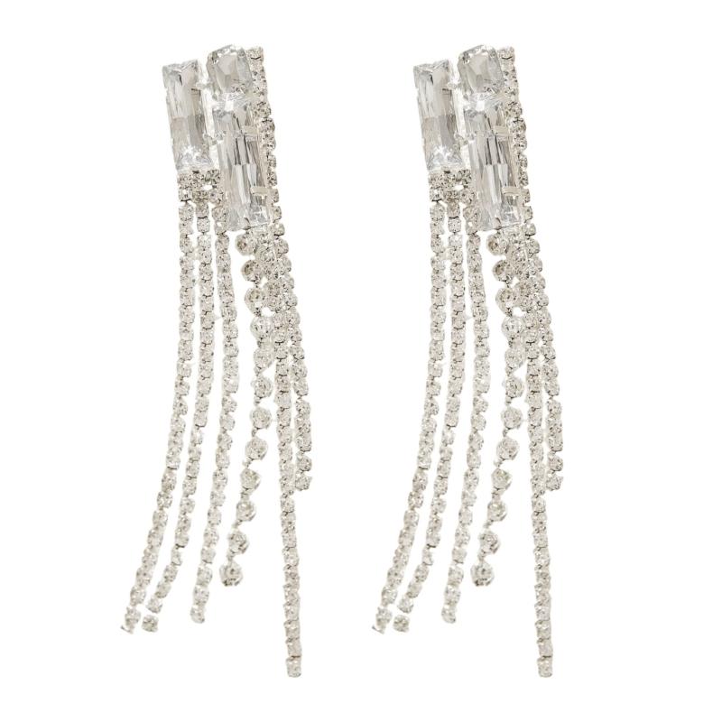 Long Crystal Fringe Earrings Slimming Design for Round Faces Sparkling Crystals for Parties Daily Wear Comfortable