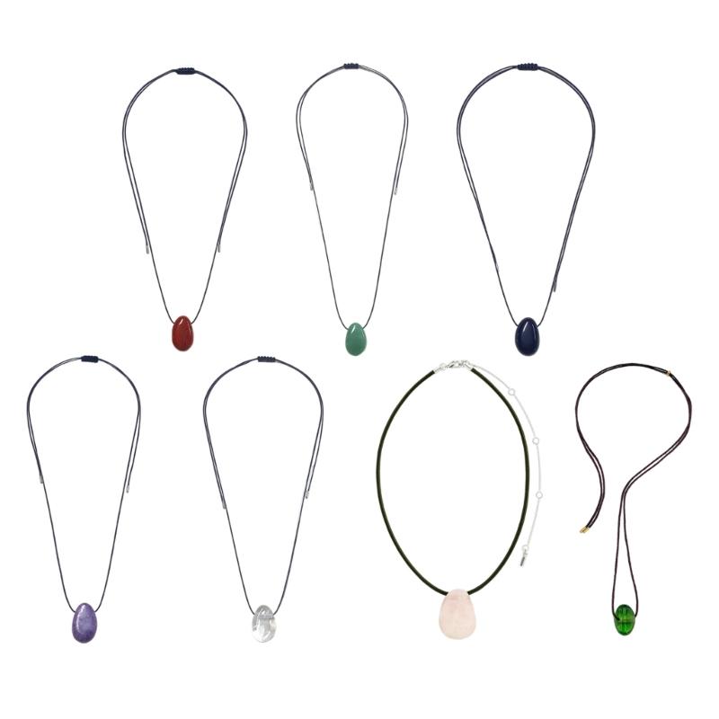 Handmade Irregular Stone Necklace with Adjustable Rope Cord Black Rope Sweater Chain for Daily Wear Comfortable Fit