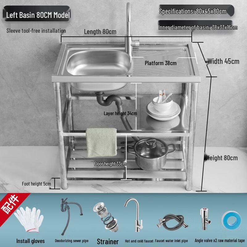 Lantuan Stainless Steel Kitchen Sink with Stand and Hot/Cold Faucet