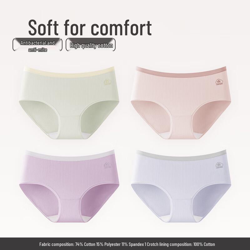 Fenteng Women's 7A Antibacterial Cotton Mid-Waist Briefs (4-Pack)