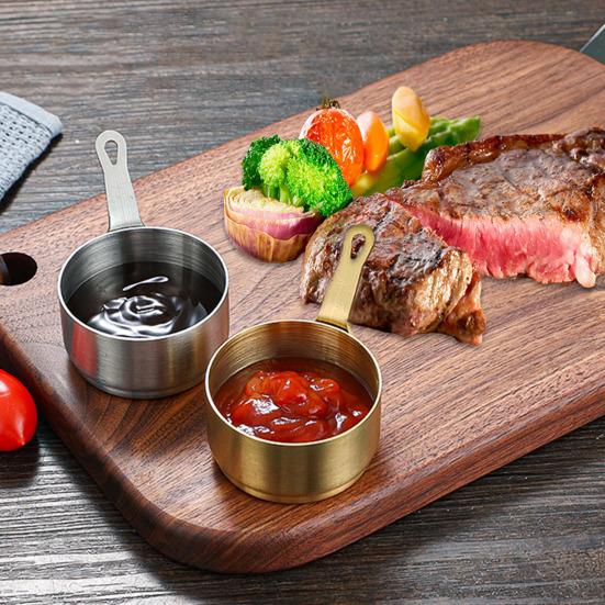 Stainless Steel Sauce Cup with Handle Reusable Metal Dipping Cups Small Condiment Server for Ketchup Appetizers Soy Sauce