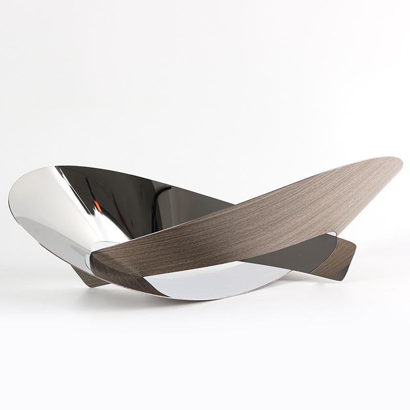 Elegant Irregular Metal & Wood Grain Fruit Bowl Ornament for Home Decor