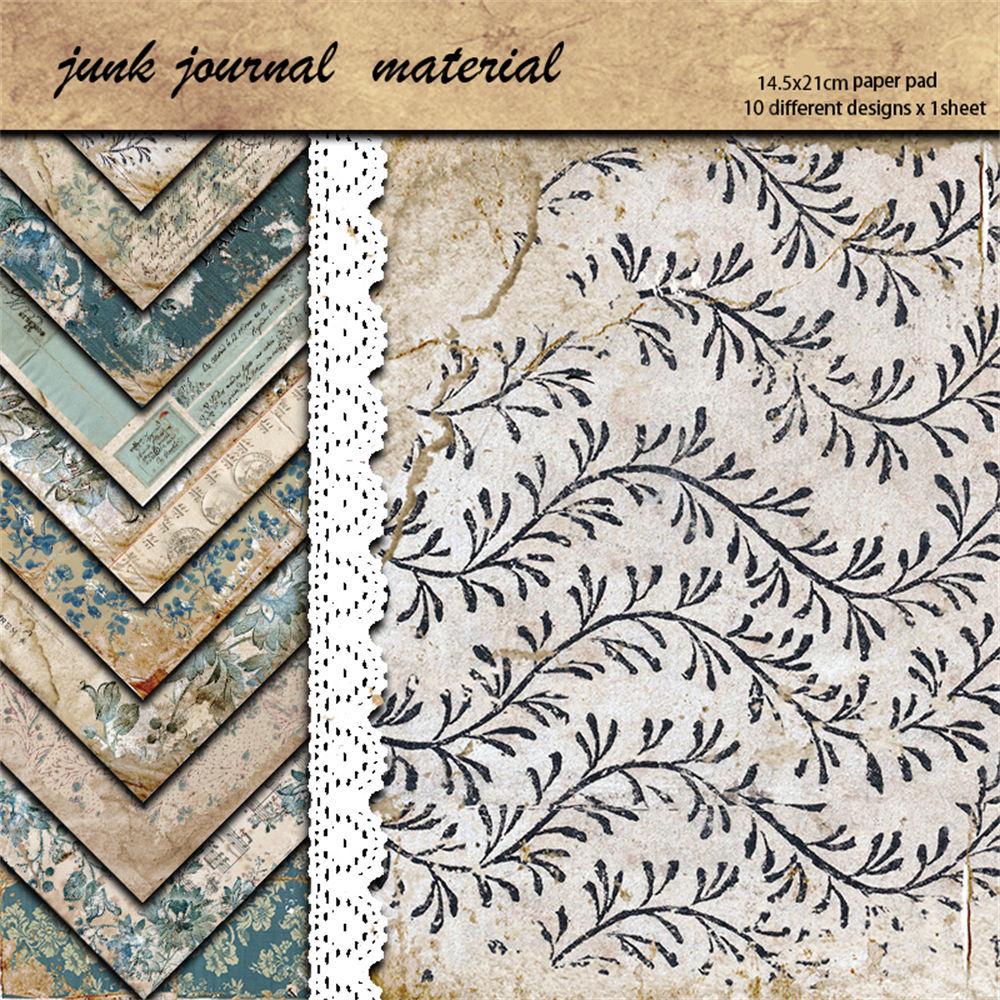 Blue Floral Retro Journal Collage Paper - 10 Sheets