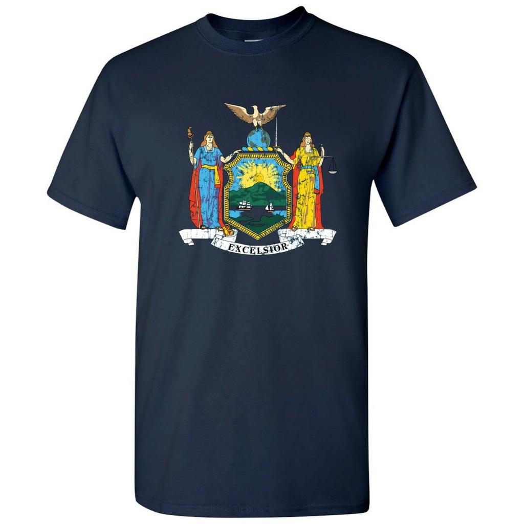 New York State Flag - Hometown Pride Local Souvenir Basic Cotton T-Shirt - Navy