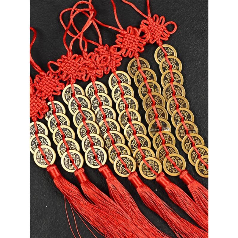 Authentic Pure Brass Five Emperors Coins Ornament with Red String - Shunzhi, Kangxi, Yongzheng, Qianlong, Jiaqing, Daoguang