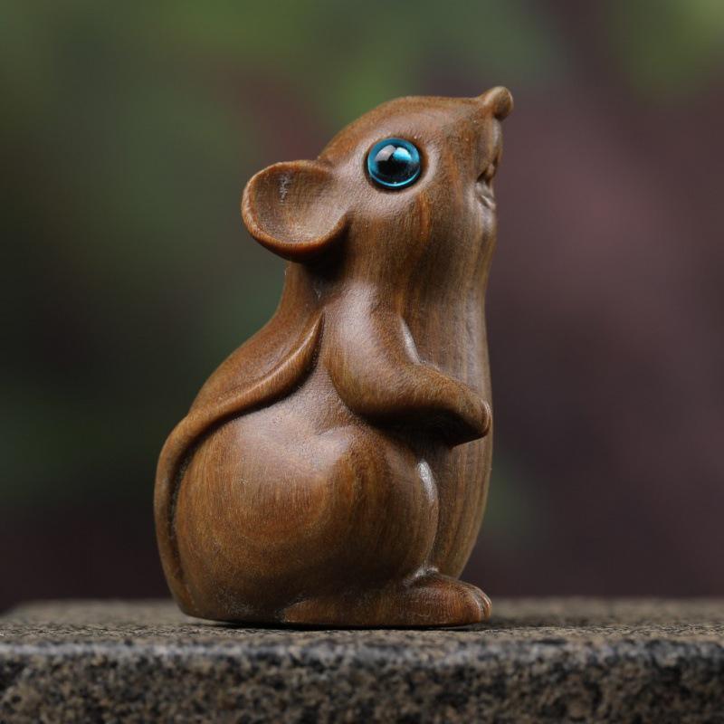 Simplistic Green Sandalwood Mouse Ornament: Zodiac Decor for Office