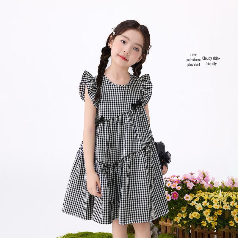 Girls' Sweet Plaid Fly Sleeve Summer Dress