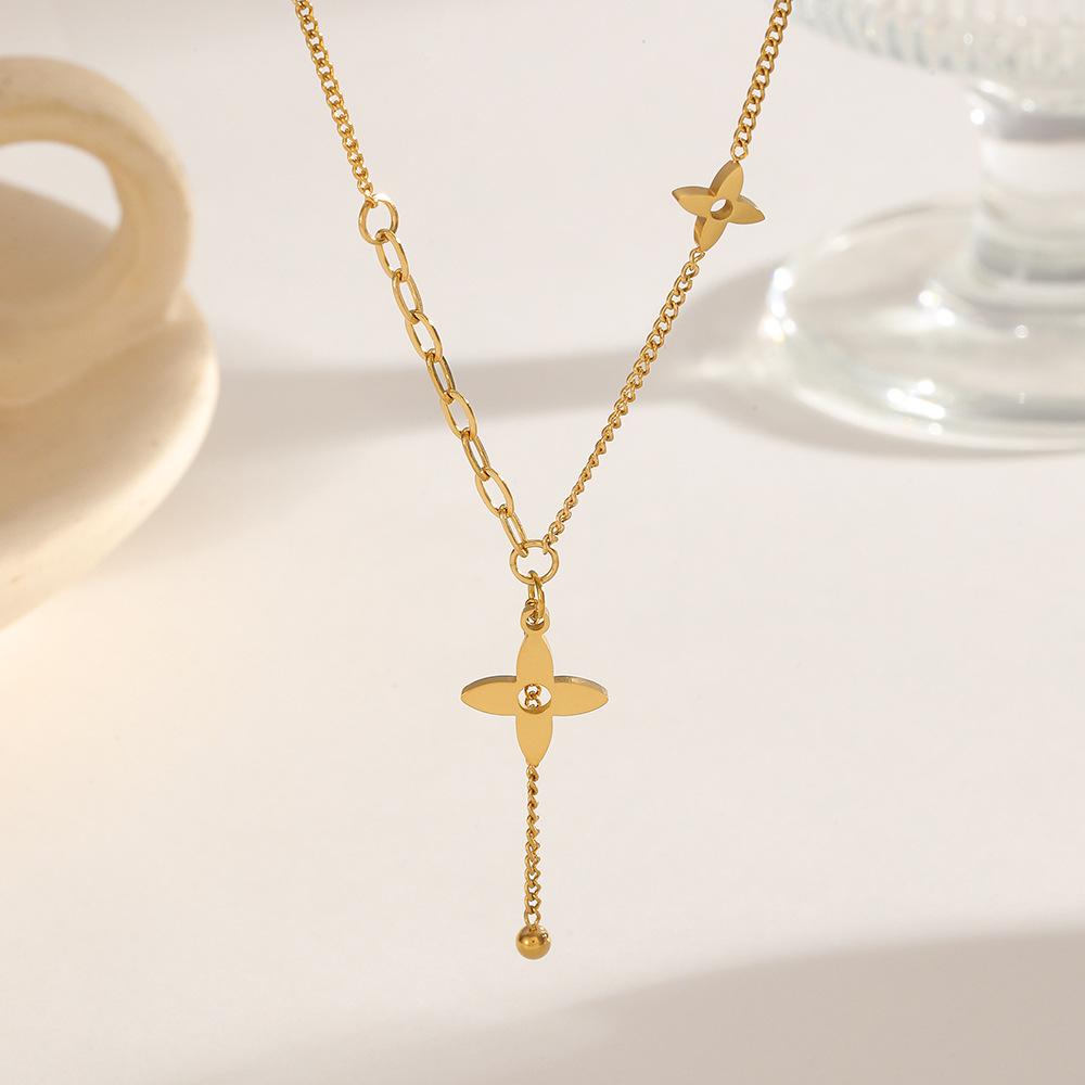 New Arrivalsweater Chain Titanium Steel Four-leaf Clover Necklace Classy Sense Accessible Luxury Women's Tassel Clavicle Chain Accessories