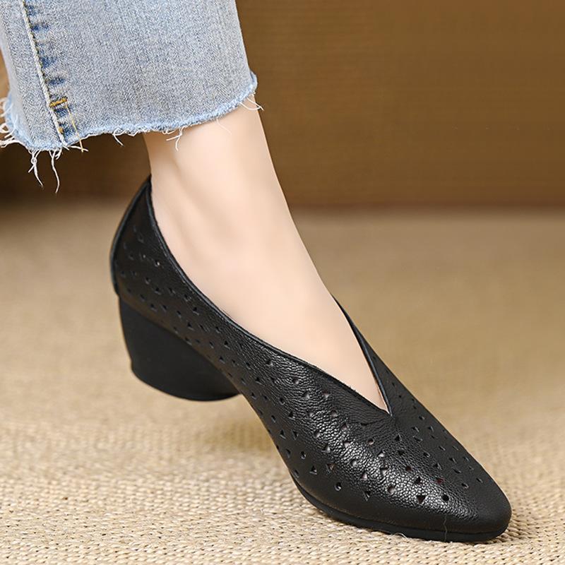 Simple and soft hollow hole shoes medium heel women's shoes 2025 spring and summer new pointed one pedal wedge heel fashion sandals