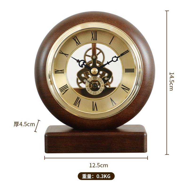 130MM Solid Wood Perspective Mantel Clock with Visible Internal Rotating Gears, Office Desk Clock