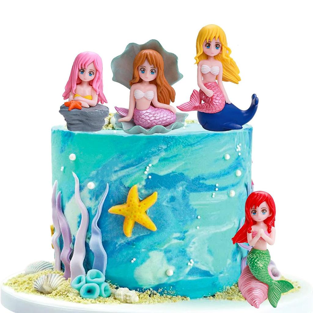 4pcs Mermaid Cake Topper Little Cute Mermaid Doll Figurines Decorations for Mermaid Princess Under the Sea Theme Birthday Party