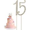 2PCS Gold Black Happy15th Birthday Cake Topper for Birthday Cake Decorations for Anniversary Party Decorations Supplies