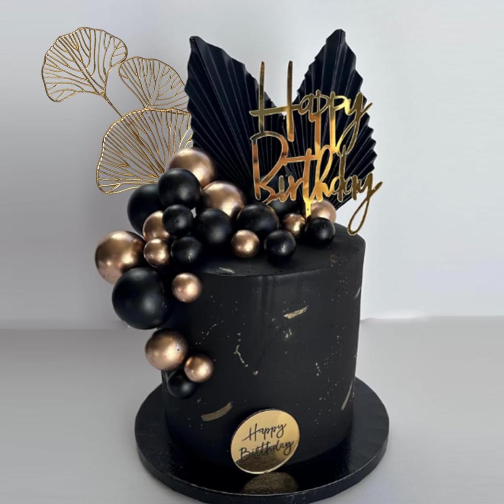 Cake Toppers Happy Birthday Cake Topper Black Gold Balls Cake Decorations for Birthday Wedding Baby Shower Party Decoration