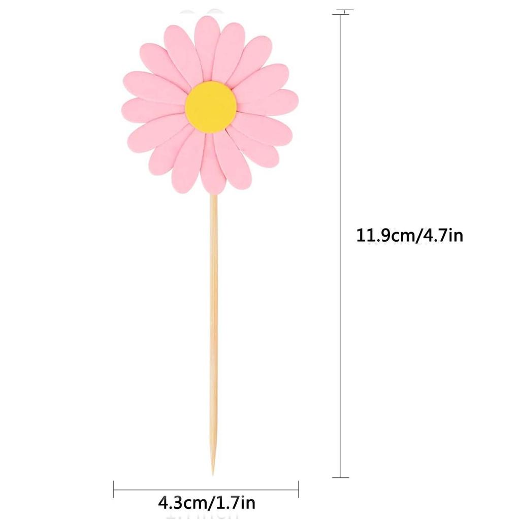 36Pcs Daisy Pink Flower Cake Topper Toothpicks Chrysanthemum Cupcake Toppers Spring Daisy Flower Cake Picks for Birthday Supplie