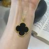 Large Flower Double-sided Four-leaf Clover Necklace for Women Natural White Mother-of-pearl Carnelian Sweater Chain