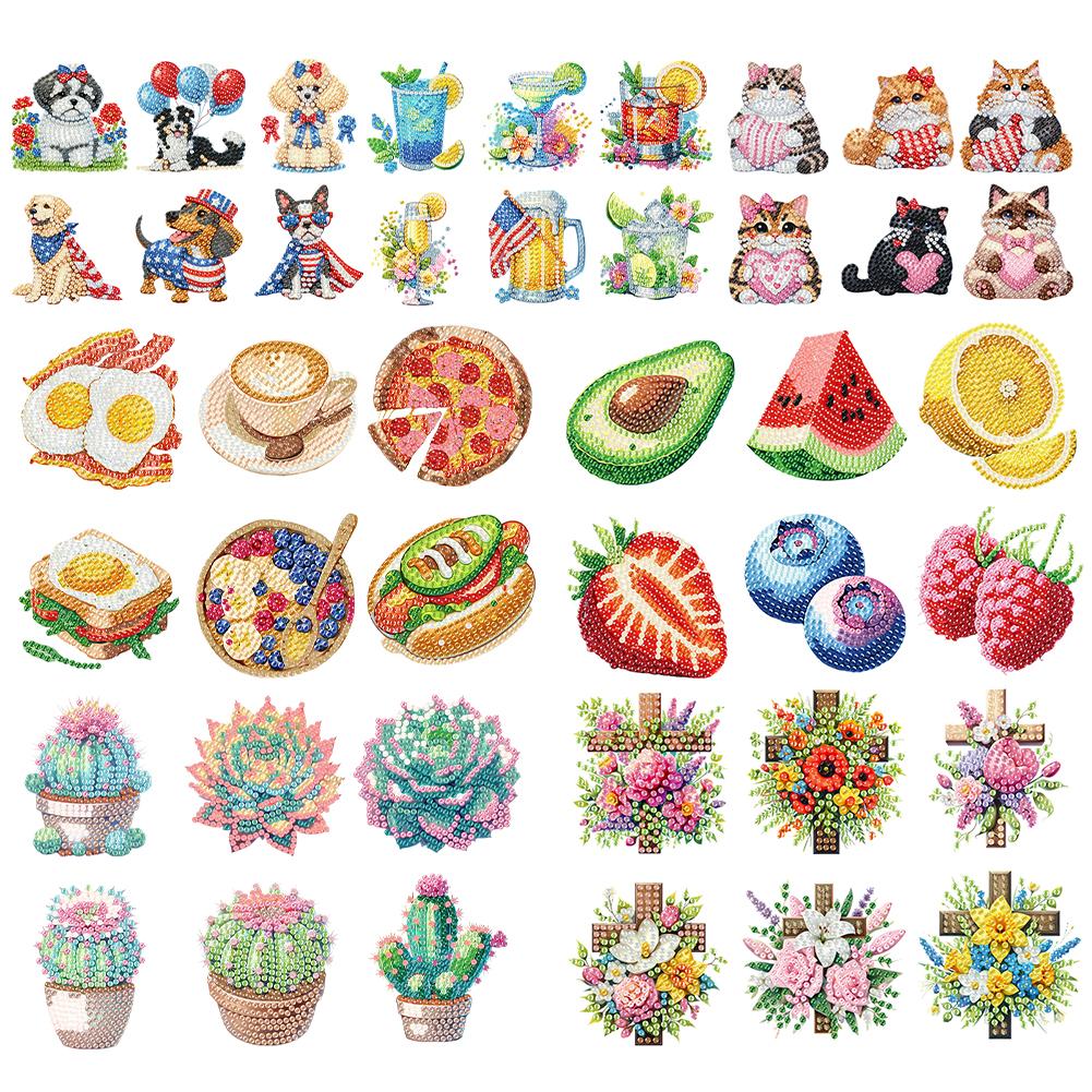 6Pcs 2D/Flat DIY Diamond Painting Fridge Magnets Crystal Sparkling Diamond Magnets Set for Holiday Festive Parties