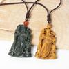 This exquisite necklace and keychain pendant is a stunning piece of jewelry that features the serene and intricate design of the Manjushri Bodhisattva, expertly carved from authentic Taihang Cliff Cypress wood. Renowned for its natural beauty and durability, the wood showcases a unique grain that enhances the pendant's elegant appearance. Accompanied by a sturdy chain, this versatile accessory can be worn as a necklace or used as a keychain, allowing you to carry a symbol of wisdom and enlightenment wherever you go. Its artistic craftsmanship and spiritual significance make it an ideal gift or personal talisman.