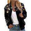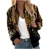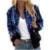 Women's Fashion Long Sleeve Sequin Starlight Print Round Neck Zip Jacket