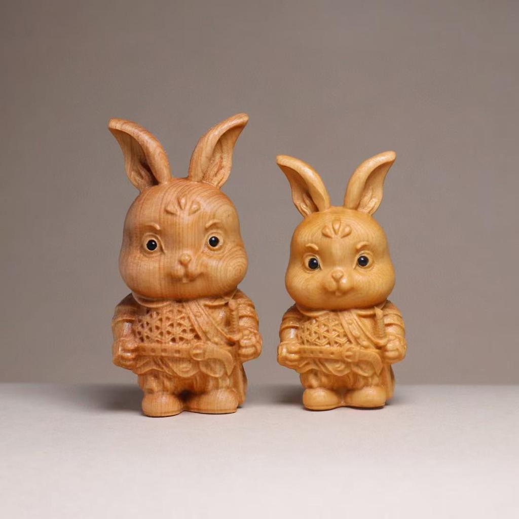 Taihang Cliff Cypress Rabbit and Rooster Carving Ornament