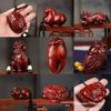 Rosewood Carved Tortoise Shell Bead Keychain Pendant