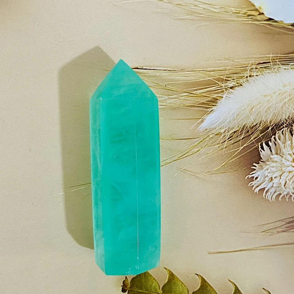 Green Fluorite Quartz Crystal Tower - Polished Stone Column Ornament