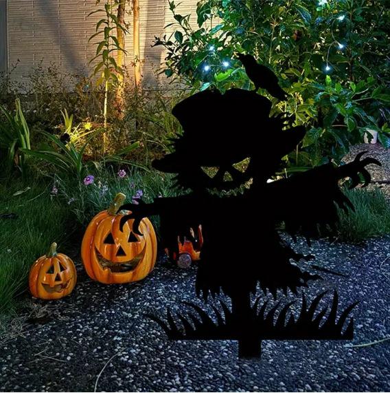 Halloween Horror Black Metal Scarecrow Ground Stake: Thrilling Outdoor Decoration
