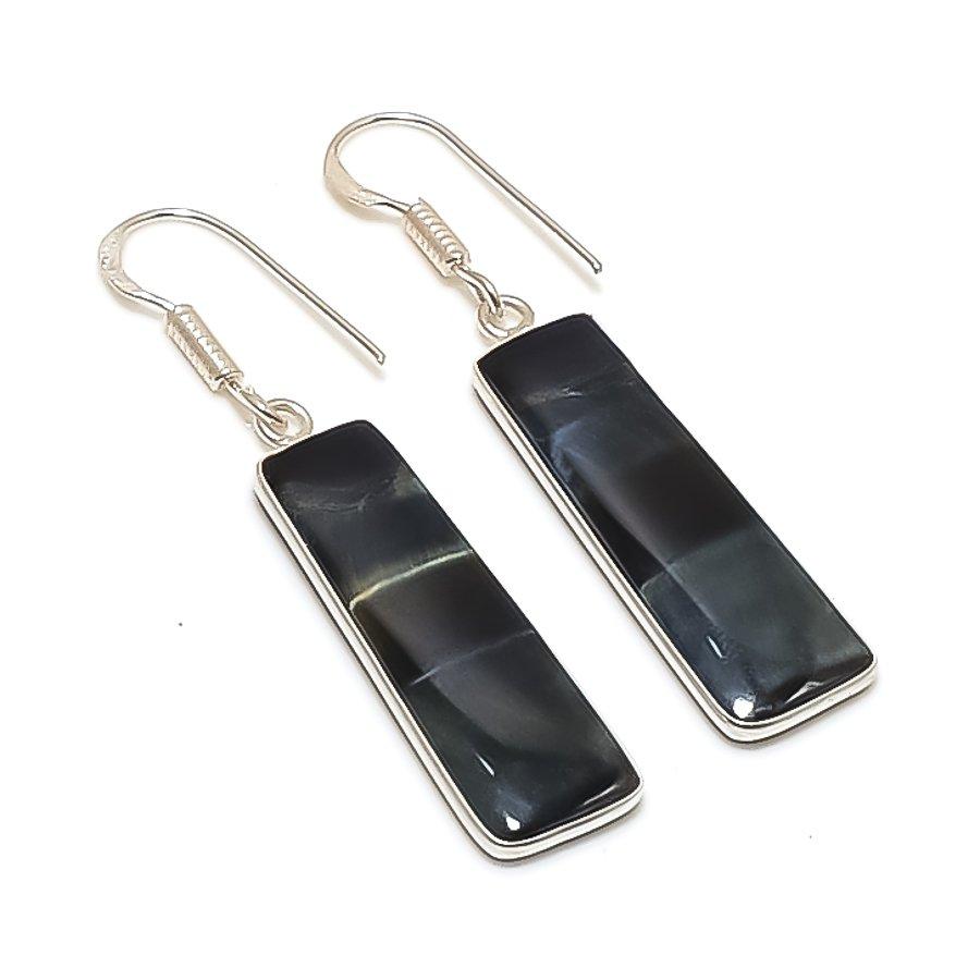Natural Black Tiger Eye Gemstone 925 Sterling Silver Jewelry Earring 1.97" AE-12134