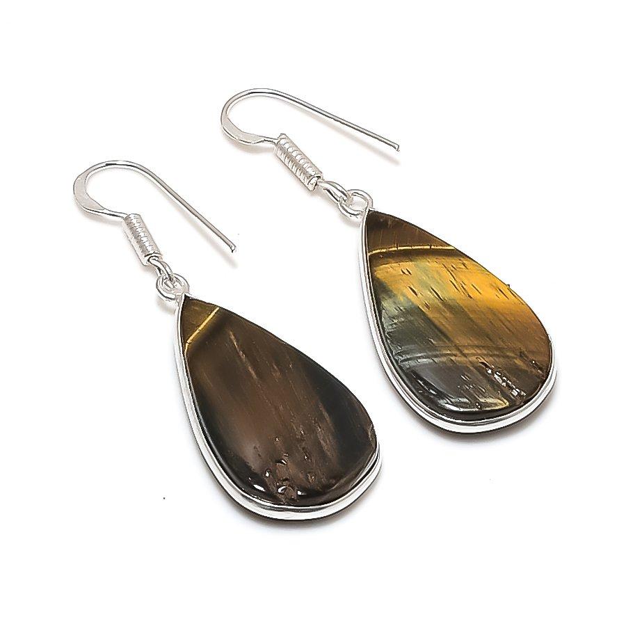 Natural Tiger Eye Gemstone 925 Sterling Silver Jewelry Earring 1.85" AE-12284