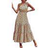 Women's Single Shoulder Bohemian Floral Dress Beach Vacation Hem Long Dress