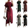 Women's Summer Fashion Straight Neck Color Regular Split Dress