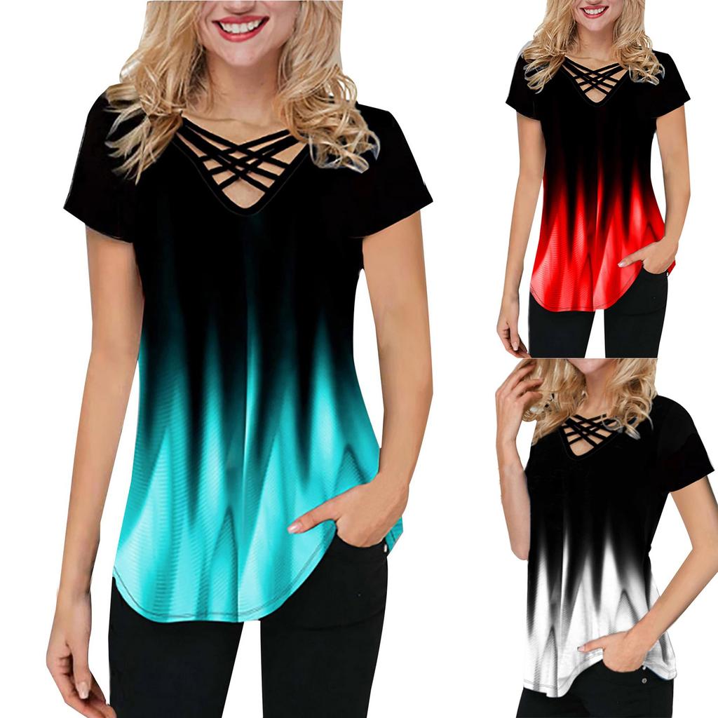 Women's Casual Temperament Pullover V-neck Loose Short-sleeved Blouse