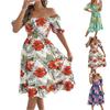 Women's Fashionable Floral Print Off Shoulder Short Sleeved Ruffle Edge Holiday Beach Loose Dress