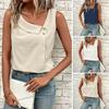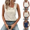 Women's Summer Fashion Color Square Neck Loose Sleeveless Button Vest Shirt Pullover Top