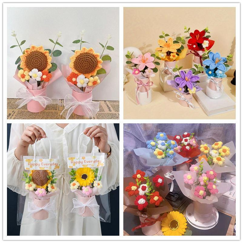 2. Hand-Woven: The knitted flower bouquet are totally handmade, it is exquisite and beautiful. You can refer to your gift object to choose the most suitable bouquet.