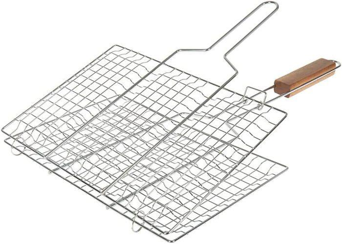 Grille de cuisson - Référence 001088 - 34 x 22 cm - 3 compartiments - Poignées en bois d'Acacia