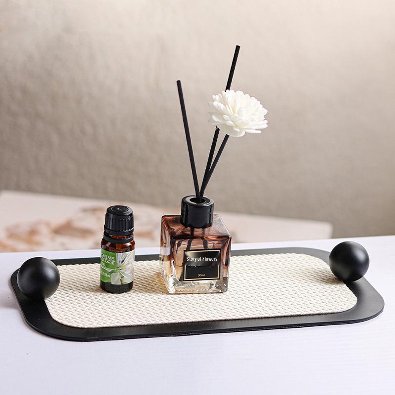 Minimalist Leather and Metal Jewelry Storage Tray with Aroma Feature for Bedrooms