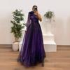 Kadın Tek Omuz Çiçekli Abiye, Şeffaf Uzun Kollu, Yüksek Yırtmaçlı Zarif Resmi Elbise