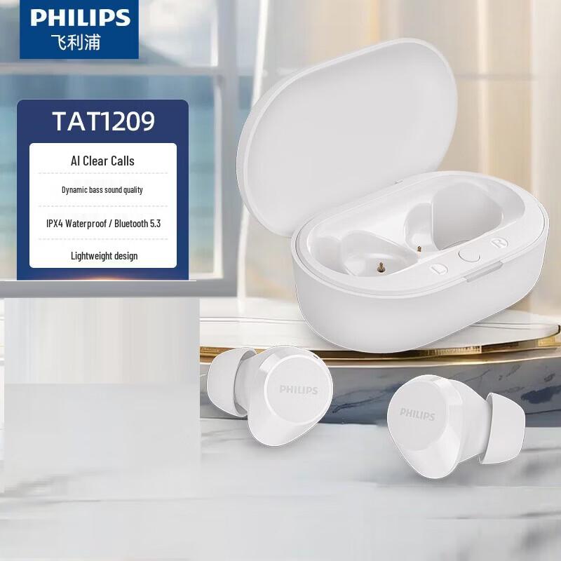 Experience crystal-clear audio with the Philips TAT1209 True Wireless Earbuds. Featuring a comfortable bean-style in-ear design and single dynamic drivers, these Bluetooth earbuds deliver rich sound for your everyday listening.