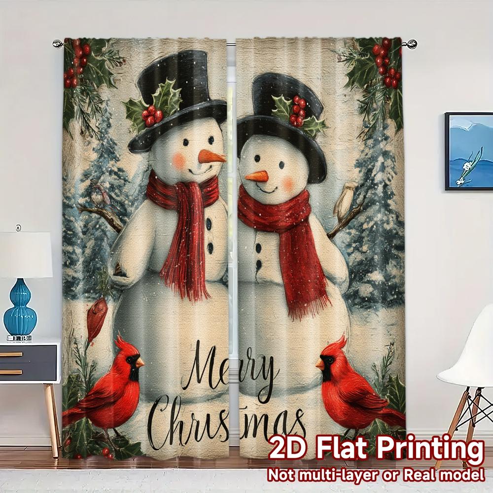 Minimalist Flat Printing Jit Curtains Without Rod Festive Snowmen Popular Fabric All Seasons Set Of 2 Made Polyester