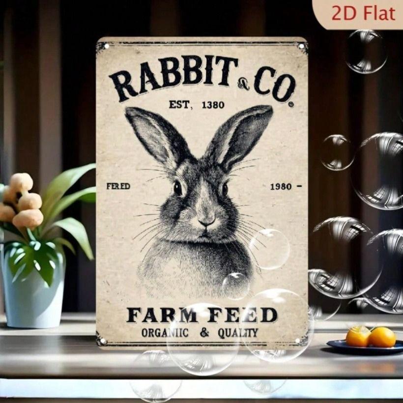 Vintage Metal Poster Wall Art, Rabbit Decor for Kitchen