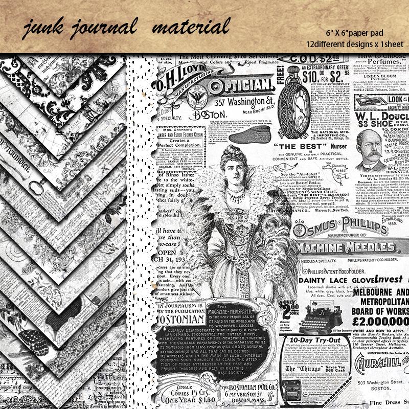 Vintage Black & White Newspaper Print Paper - 12 Sheets, European & American Style, English Pattern Decor.