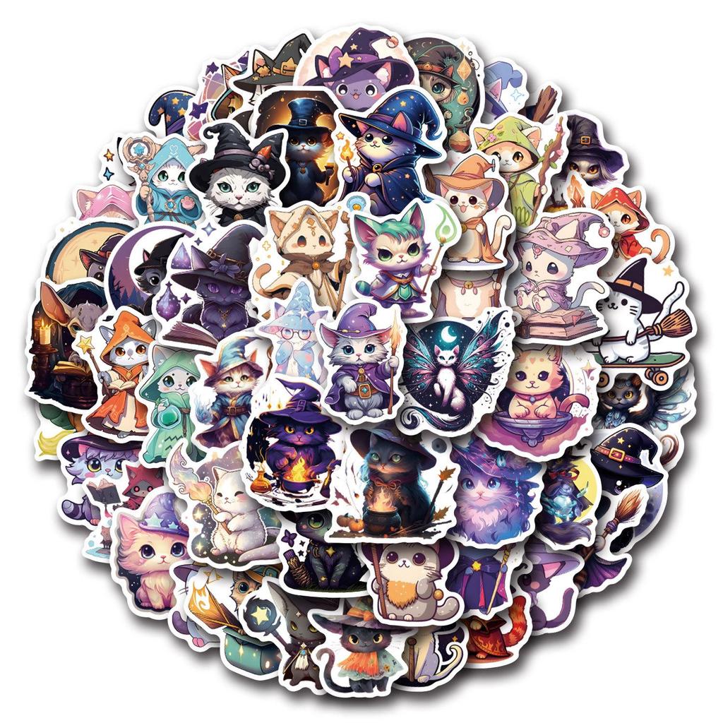55 Magic Cat Graffiti Stickers - Cartoon Decor for Suitcases & Scooters