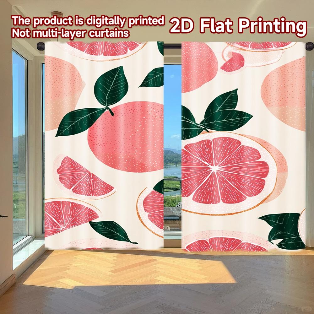 Set Of 2 Minimalist Flat Printing Curtains Without Rod Fruit Pattern Leaves Easter Festival Versatile Fabric Curtain Polyester