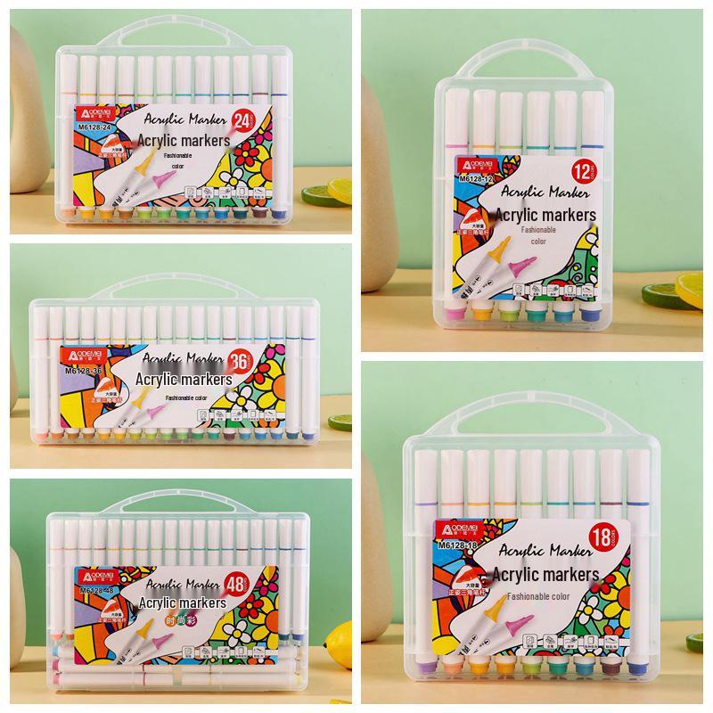 Multicolor Triangular Barrel Acrylic Markers for Students and Kids - Set of 12-60