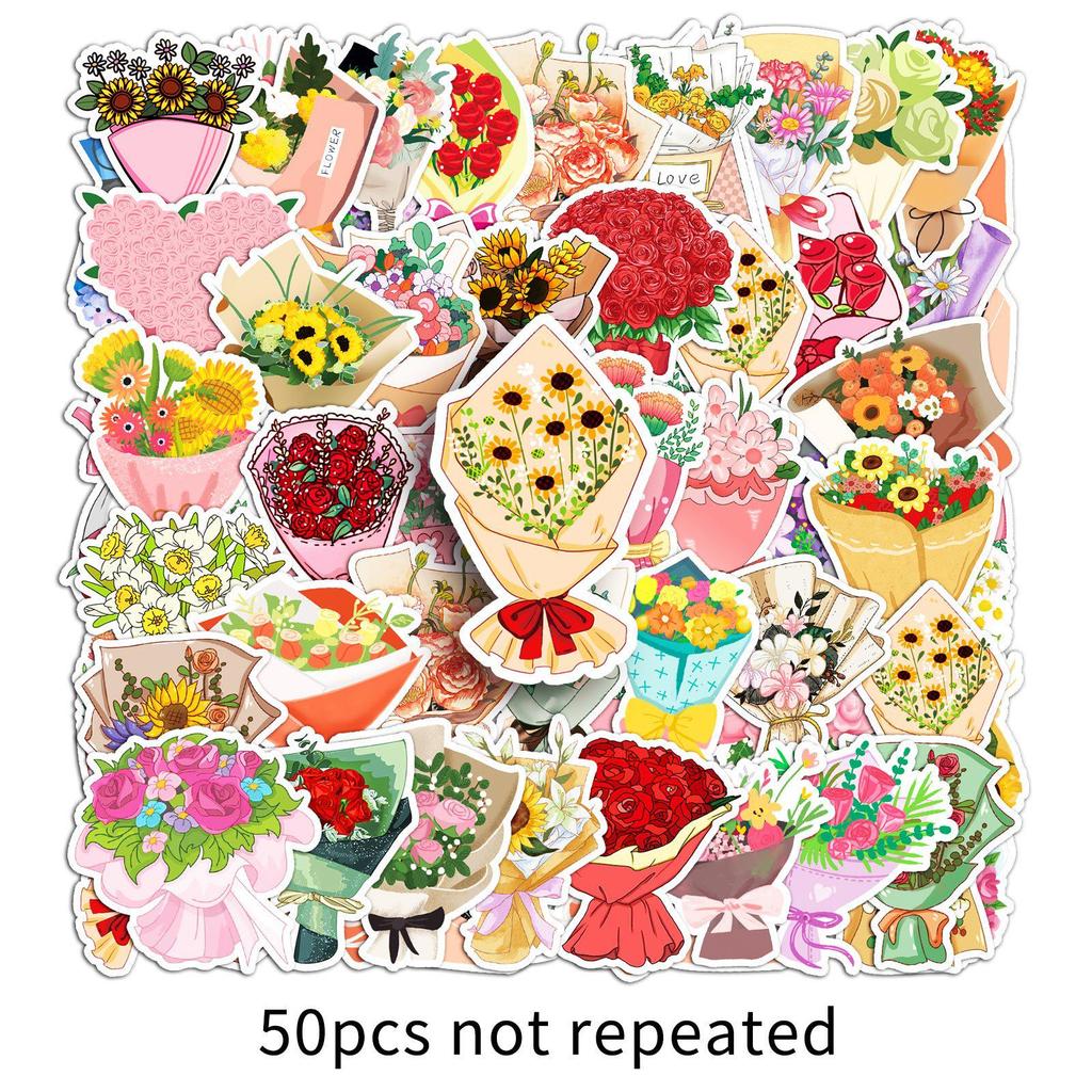 50 Flower Bouquet Stickers: Waterproof, Decorative, INS Style for Planners and Stationery