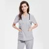 This washable surgical gown suit set is designed specifically for medical professionals, featuring an elastic V-neck for comfort and ease of movement. Crafted entirely from durable polyester, it offers a practical solution for busy doctors and nurses. This work uniform provides a balance of functionality and style, ensuring it meets the demands of a healthcare environment.