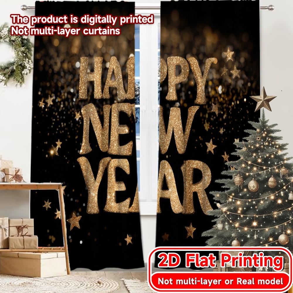 Set Of 2 Modern Flat Printing New Year Glow Curtain Fabric Versatile Polyester Curtains Room Decor Ldeal Living For Made