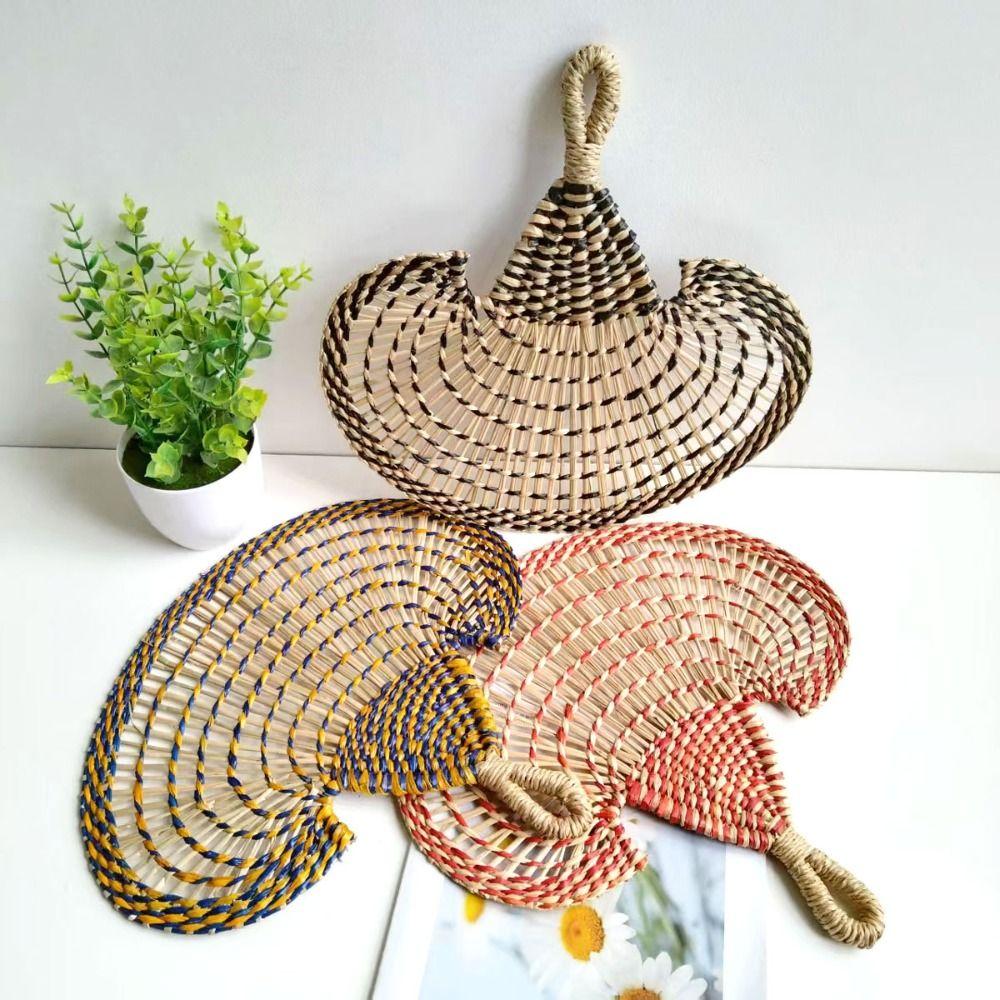 Bohemian Hand-woven Straw Fan Colorful Hand Braided Fan Decorative Handmade Fan Beach